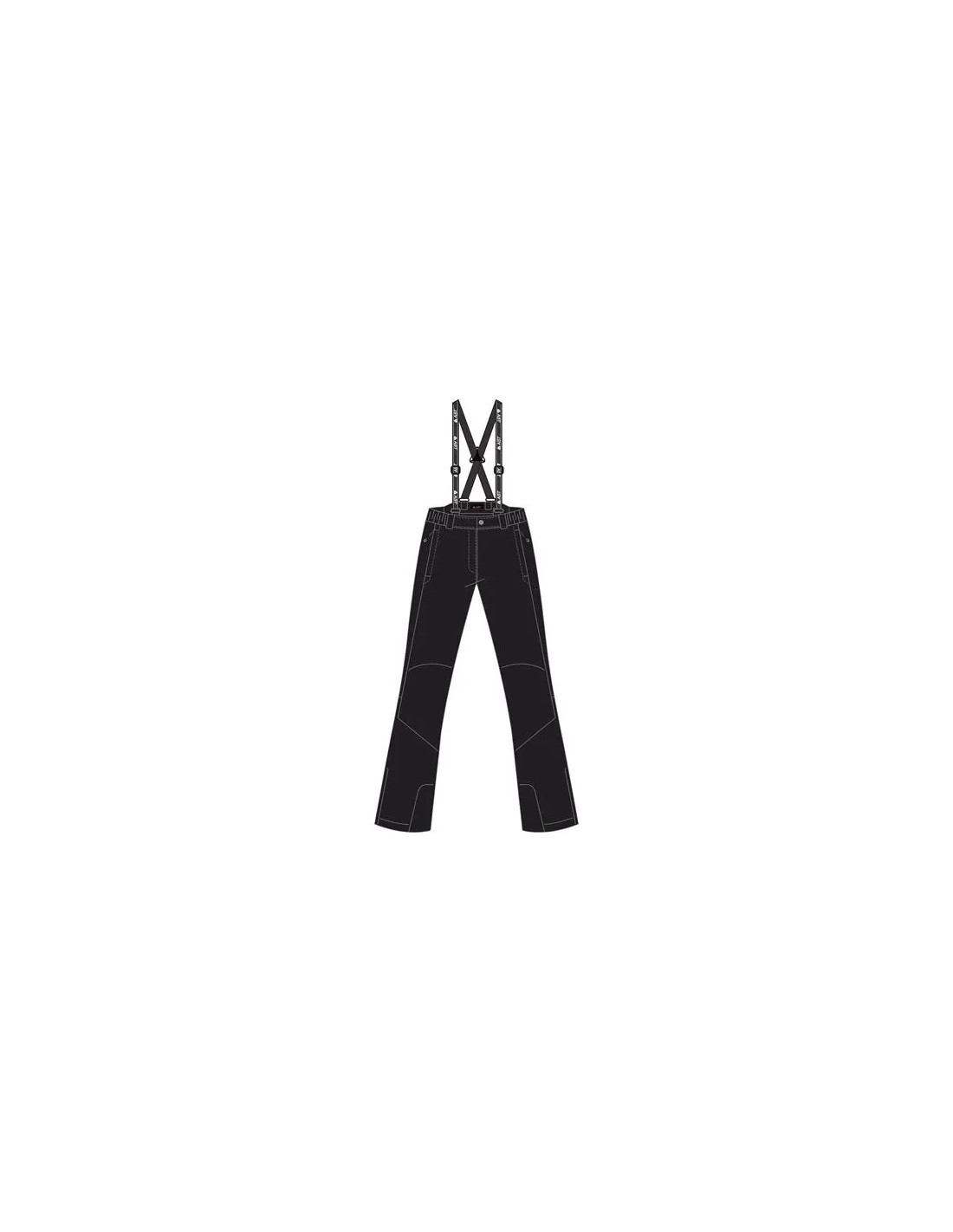Lyžařské kalhoty z elastické prodyšné bytexové tkaniny, podlepené švy, zapínání na zip na přední straně a vnitřní zapínání na knoflík a háček, elastický pas, odnímatelné a nastavitelné šle, dvě kapsy se zapínáním na zip, spodní nohavice nastavitelné na zip, vnitřní kšandy.